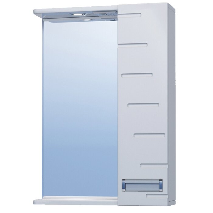 Зеркало Vigo Diana 50 правое со спотом 1 дверца; 2 полки ЛДСП 1 светодиодный светильник включатель с розеткой; ручка врезная металлическая хромированная.