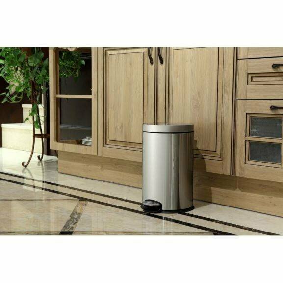 высокое качество материалов; современные технологии; плавное и бесшумное закрывание; достаточную вместимость ведра, возможность утилизации отходов разных габаритов, от мелкого мусора, до пластиковых бутылок; эстетическую привлекательность модели; простоту использования. Современный и эргономичный дизайн украсит ваш интерьер и значительно облегчит процесс утилизации мусора. Брашированная сталь подойдет для современного интерьера в спокойных элегантных тонах. Вам будет комфортно им пользоваться как в ванной комнате, так и на кухне.