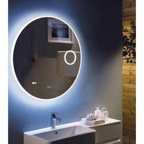 Подвесное зеркало WeltWasser Aurel 800-3 80 с увеличительным косметическим зеркалом, с часами, с системой предотвращения появления запотевания, с LED подсветкой и с сенсорным touch выключателем. Сертификат CE.
