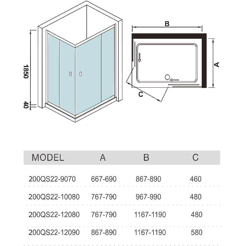 Профиль хром. Фурнитура металл хром. Стекло прозрачное 6 мм. Регулировка профиля 23 мм. Механизм металлических роликов. Двери радвижные. Стекло с механизмом "легкая установка и легкая очистка". Установка универсальная.