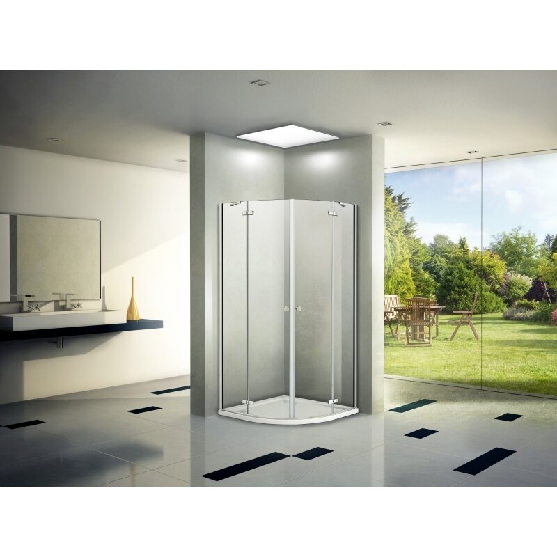 Стеклянный душевой уголок WeltWasser WW200 90x90 200R22-90 в форме четверти круга, с двумя распашными дверьми.