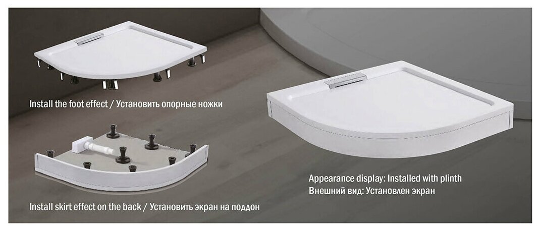 | Особенности | Можно использовать ножки (продаются отдельно) или любая другая опора. Экран для поддона продается отдельно. |