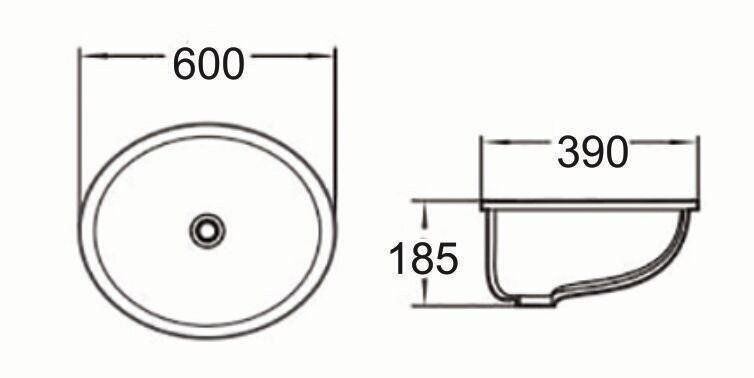 Раковина керамическая (встраиваемая снизу).Мебельная, монтаж к столешнице снизу.