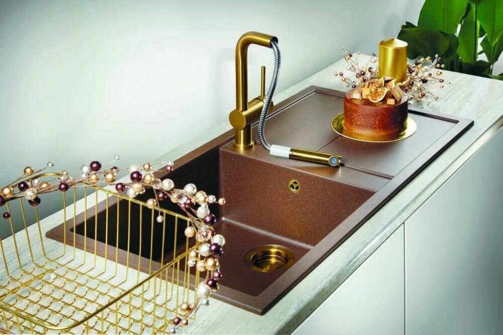 Гарантия на мойки из материала «Tetogranit» -15 лет. Метод производства: литье. «Tetogranit» – это продукт сочетания натурального гранита и акриловой смолы, в состав которой входит уникальный компонент на основе синтетических волокон Теторон (Япония). Теторон устойчив ко всем видам грибка. Благодаря уникальным свойствам, полимер обволакивает гранит и защищает его от воздействия агрессивных внешних факторов. «Tetogranit» имеет превосходную сопротивляемость к ударам и царапинам. Мойка прослужит долгие годы, сохранив первоначальный вид. В состав акриловой смолы входят ионы серебра, которые препятствуют размножению бактерий на поверхности мойки. Мойка упакована в картонную коробку и дополнительно зафиксирована картонными уплотнениями. В комплект включены крепления, донный клапан. Идеальное сочетание со смесителями OMOIKIRI Nagano из искусственного камня. Комплектация: крепления; донный клапан (автоматический донный клапан приобретается отдельно); сифон. Упаковка: картонная коробка; картонные уплотнения.