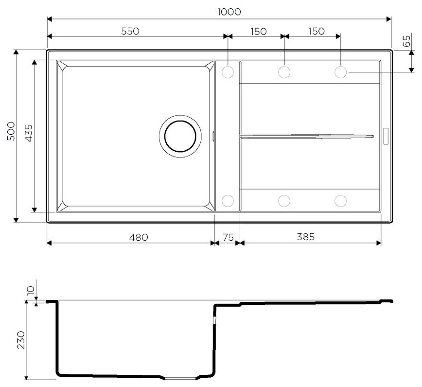 | Отверстия под смеситель | без отверстий,на 1 отверстие,на 3 отверстия,на 2 отверстия |