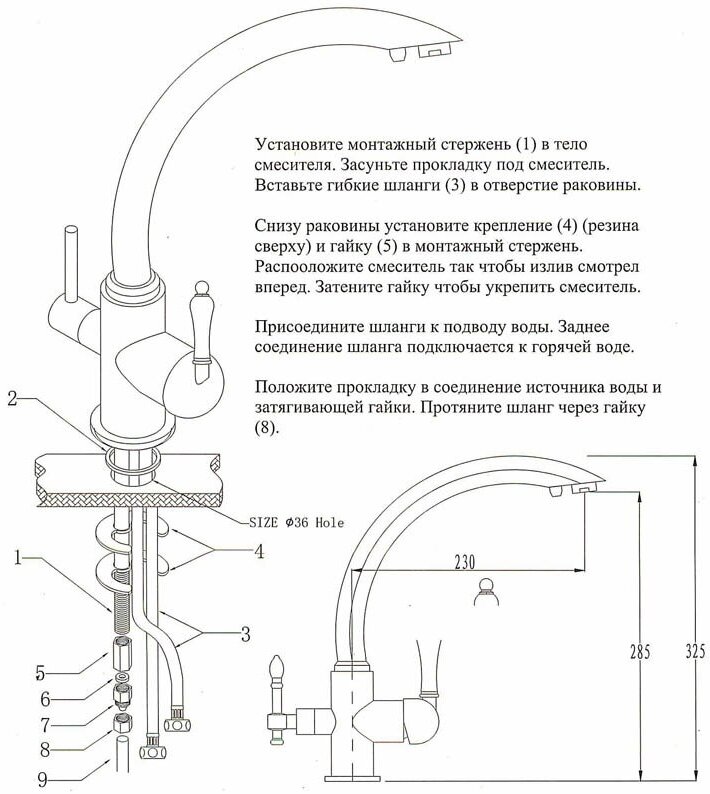 | Подача питьевой воды | через совмещенный излив |