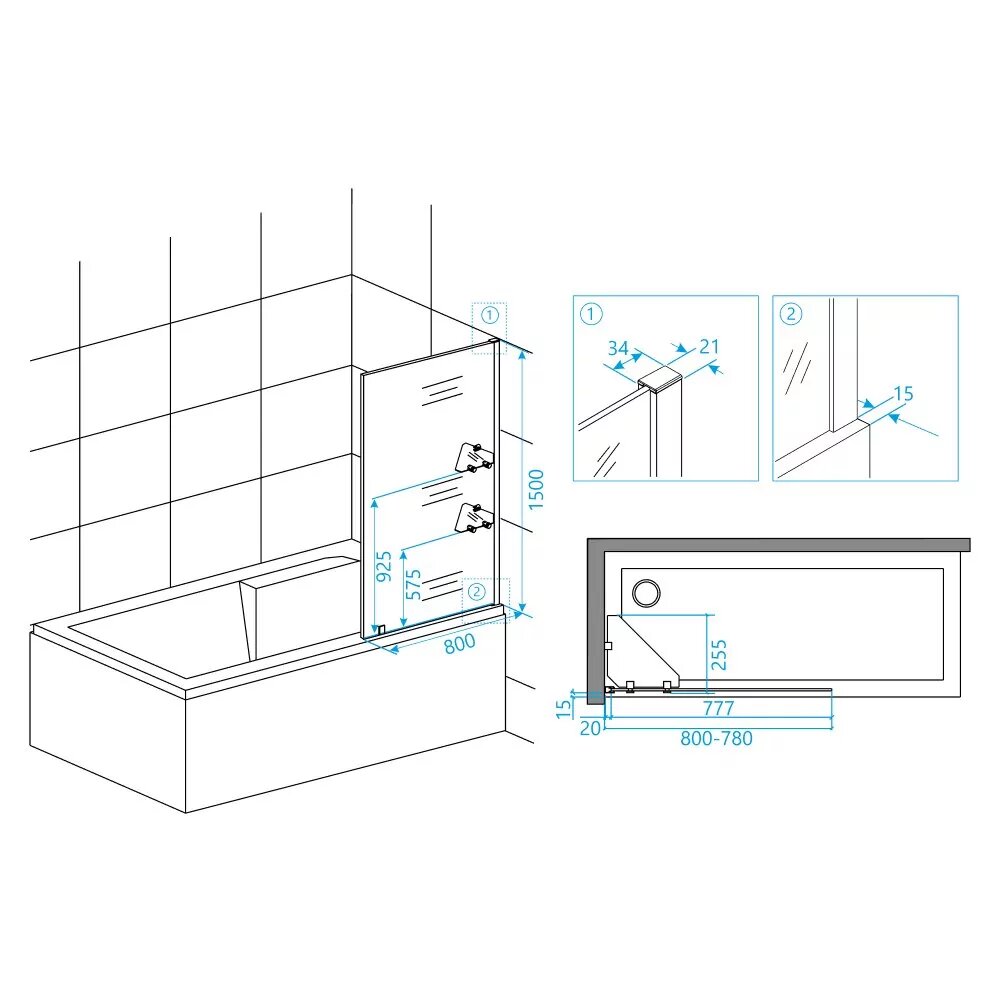 - Стекло: закаленное, безопасное, толщиной 8 мм.