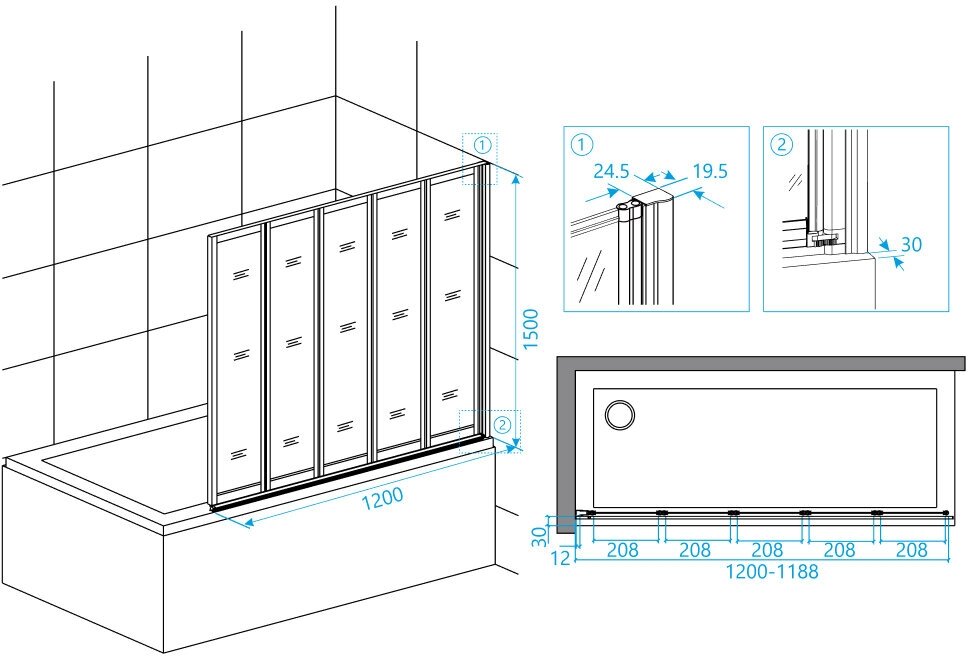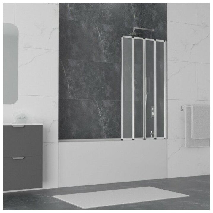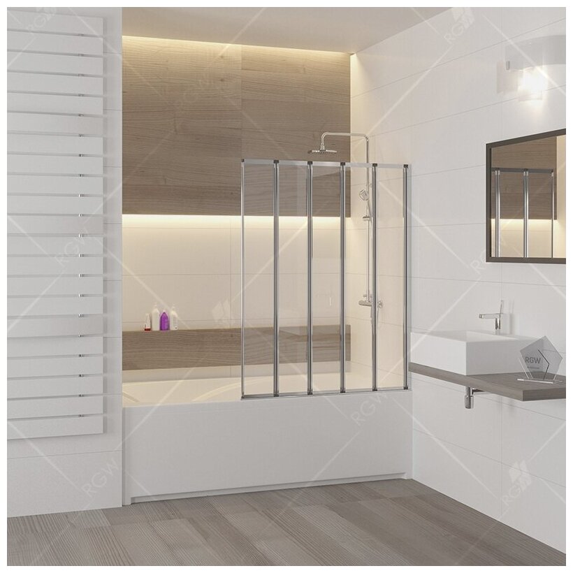 Шторка для ванны RGW SC-22 120x150 стекло прозрачное. Шторка на ванну пятисекционная, складная дверь. Толщина закаленного, безопасного стекла 4 мм. Угол складывания 360. Ширина створки 24 см. В комплекте порог душевого ограждения.