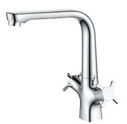 Смеситель установлен месяц назад. Смесители данного производителя уже покупались. Зарекомендовали себя хорошо. В квартире установлена газовая колонка, одновременно включать холодную и горячую воду нельзя. Температура горячей воды регулируется на колонке. Поэтому однорычажный смеситель не подходит. Выбор пал на данный смеситель. Плавный ход вентилей, высокий излив. Бабушка довольна)