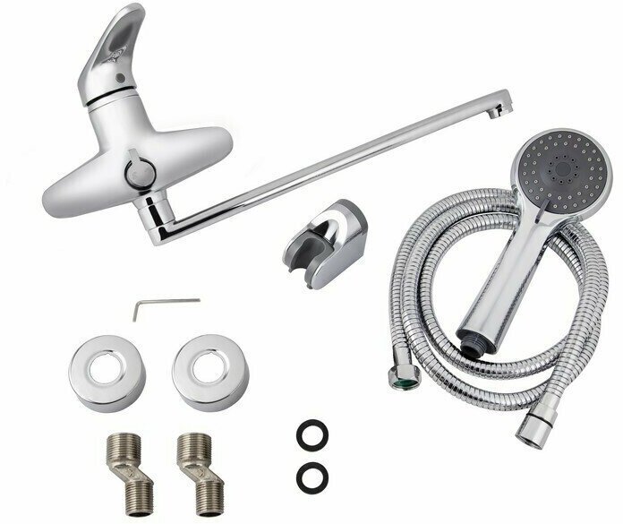 | ВКоробке | Смеситель - 1 шт. Лейка - 1 шт. Шланг - 1 шт. Эксцентрик - 2 шт. Инструкция - 1 шт. |