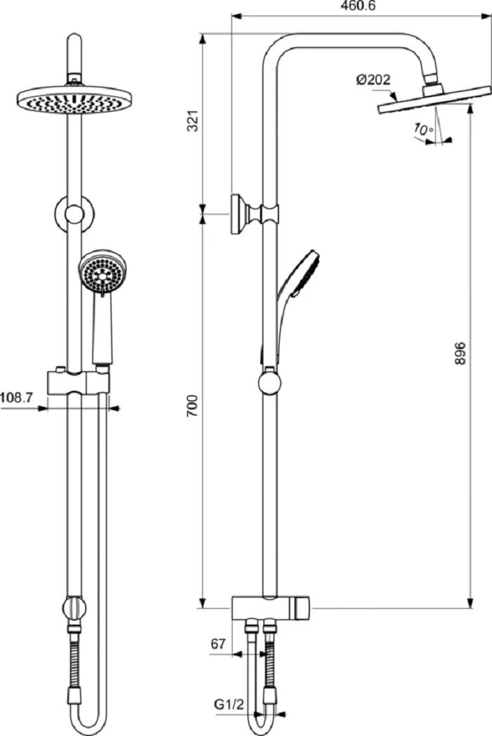 | ВКоробке | Душевая стойка - 1 шт. Лейка - 1 шт. Шланг - 1 шт. Верхний душ - 1 шт. Держатель для душа - 1 шт. Инструкция - 1 шт. |