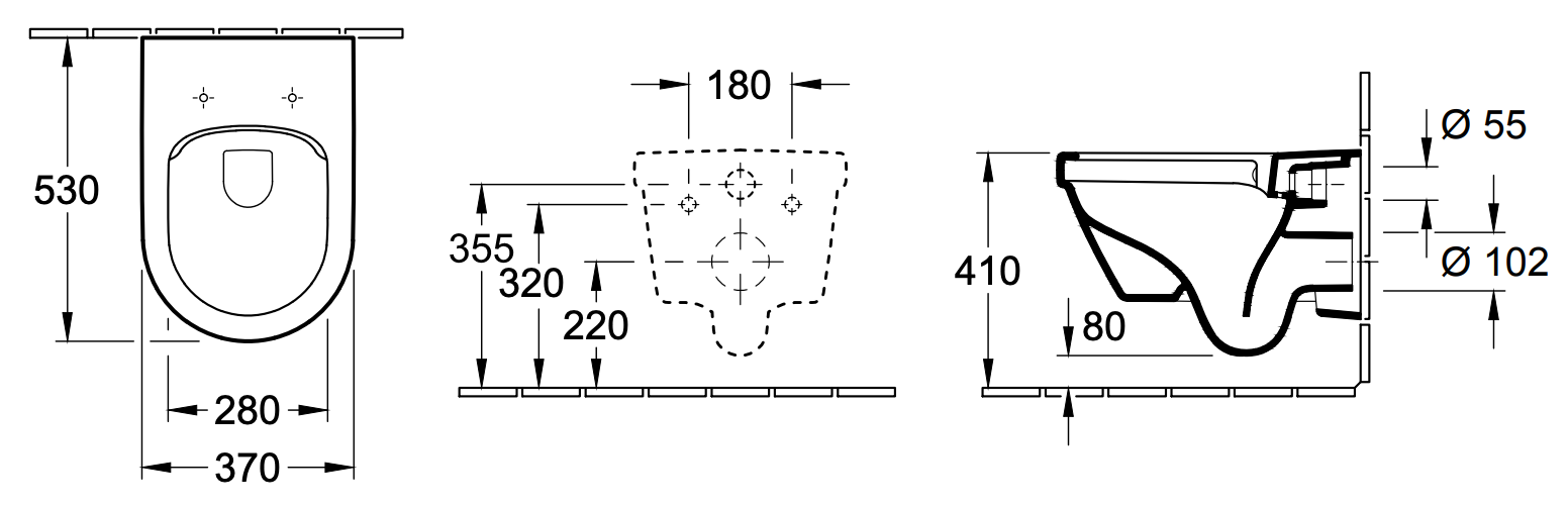 - Габариты чаши унитаза (ШхВхД): 370х330х530 мм.