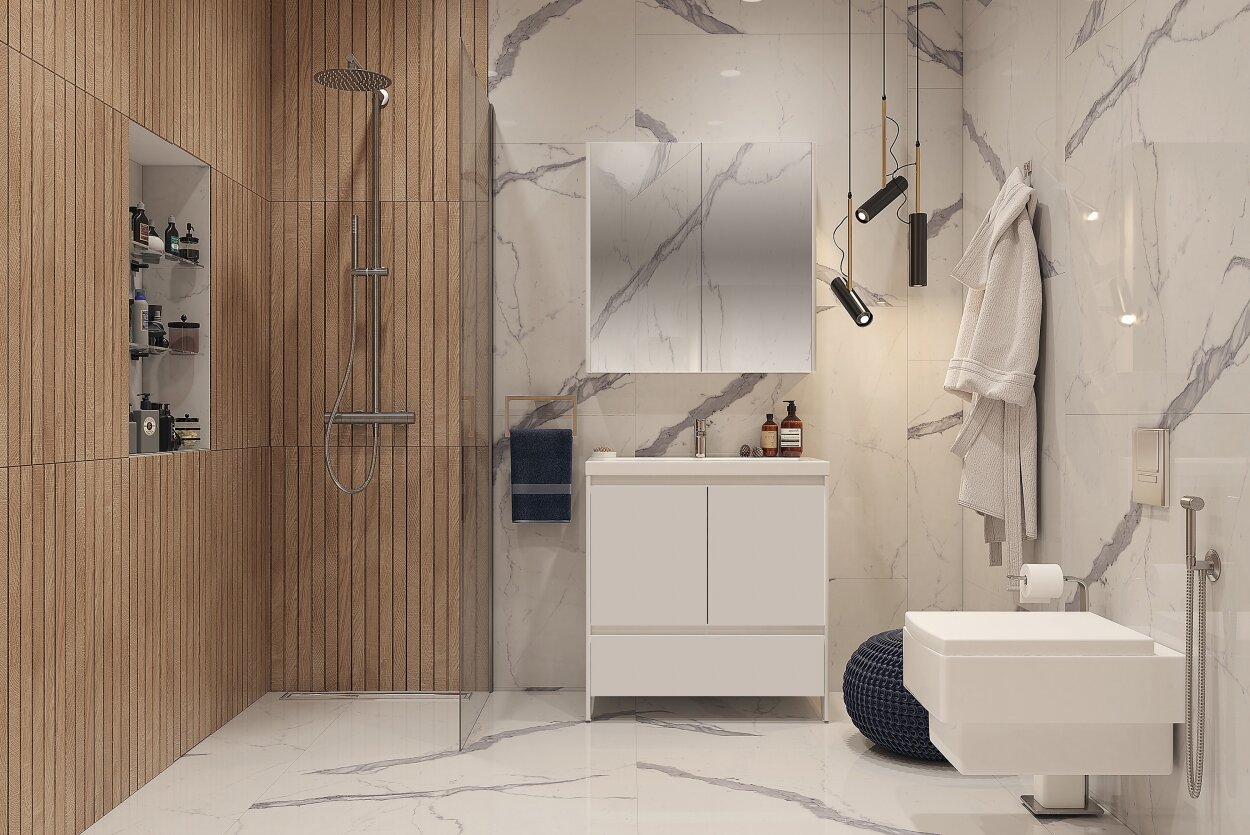Тумба Вельвекс стойко выдержит постоянное воздействие влаги, подчеркнув общий вид санузла.
