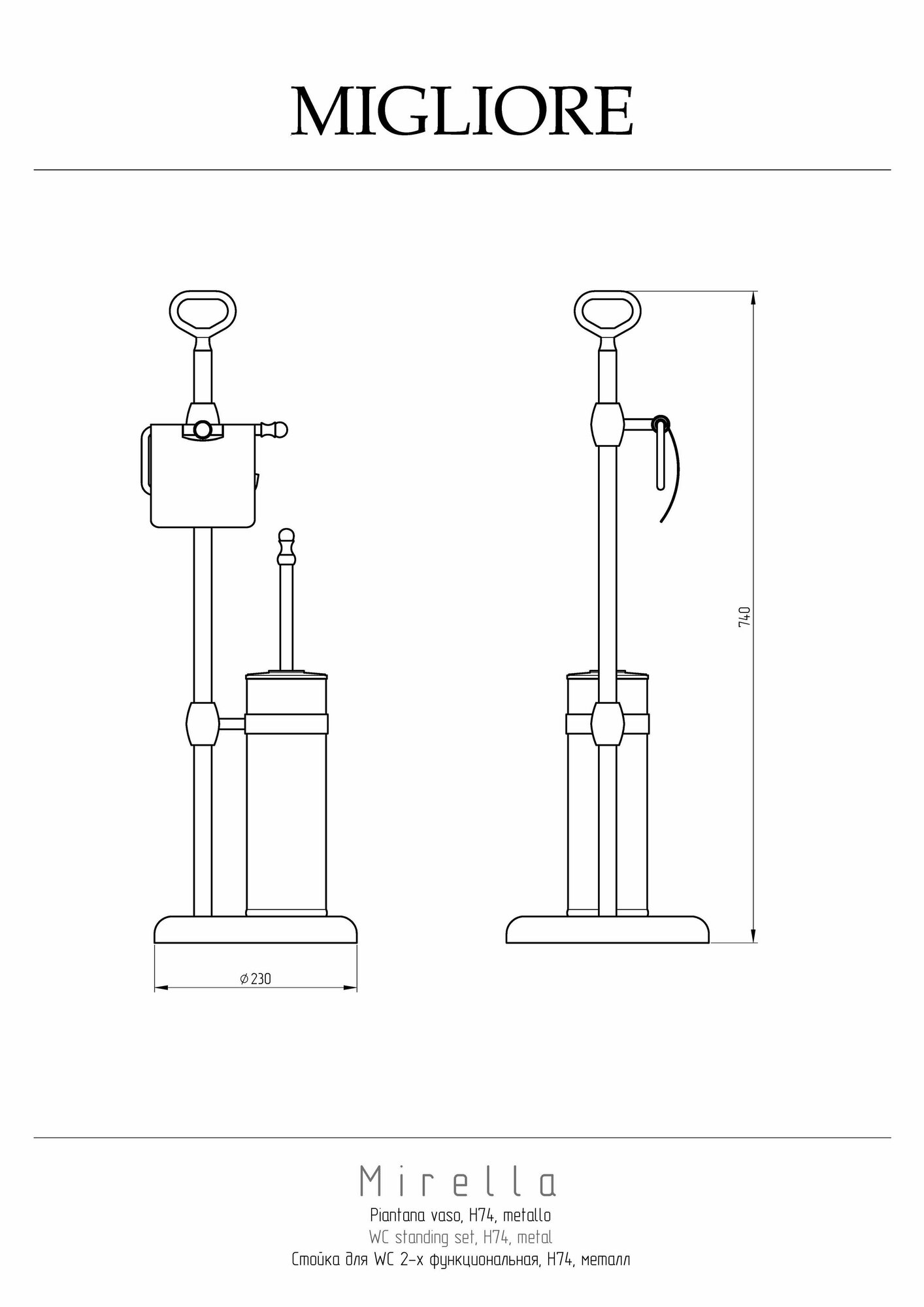 Напольная стойка Migliore Mirella 17194 двухфункциональная с ершиком и бумагодержателем.