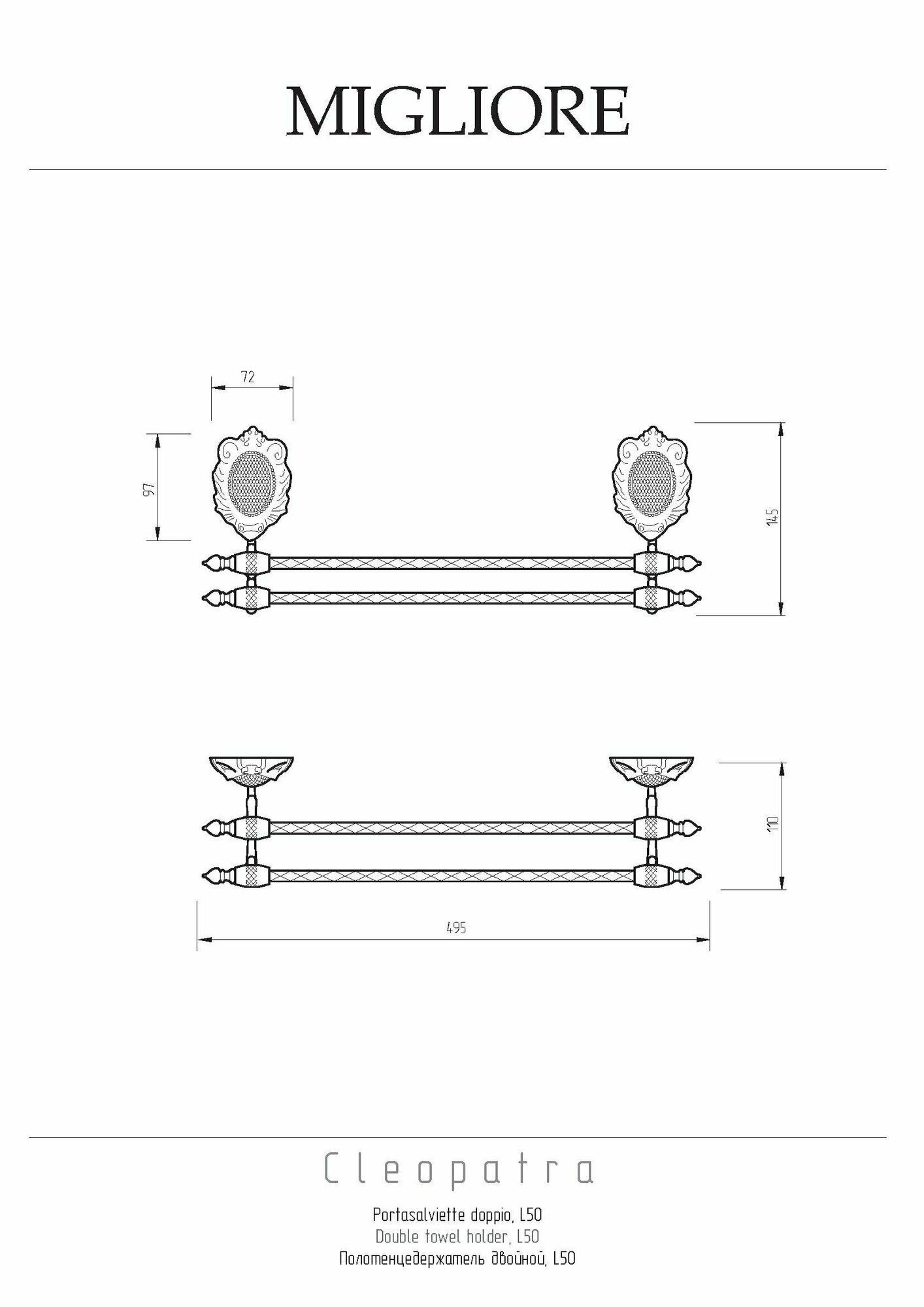Полотенцедержатель Migliore Cleopatra 16701 двойной.