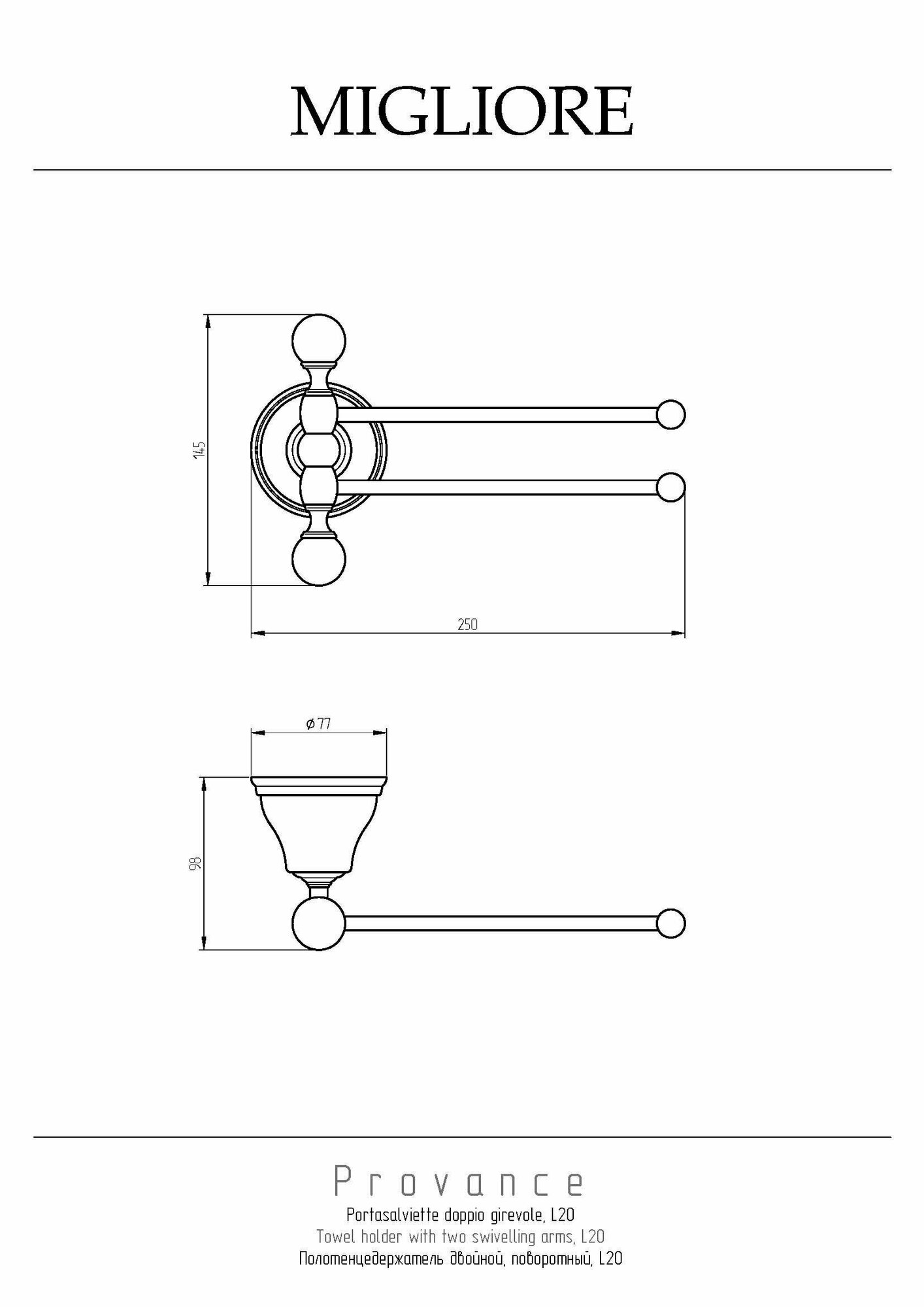Аксессуары коллекции PROVANCE бренда MIGLIORE имеют нежный цветочный декор на керамике и создают уют в ванной комнате в классическом или рустикальном стиле. Полотенцедержатель двойной поворотный коллекции PROVANCE длиной 20 см очень удобен в использовании — для него достаточно небольшого пространства, и держатели можно развернуть в одну или другую сторону в зависимости от наличия места на стене.