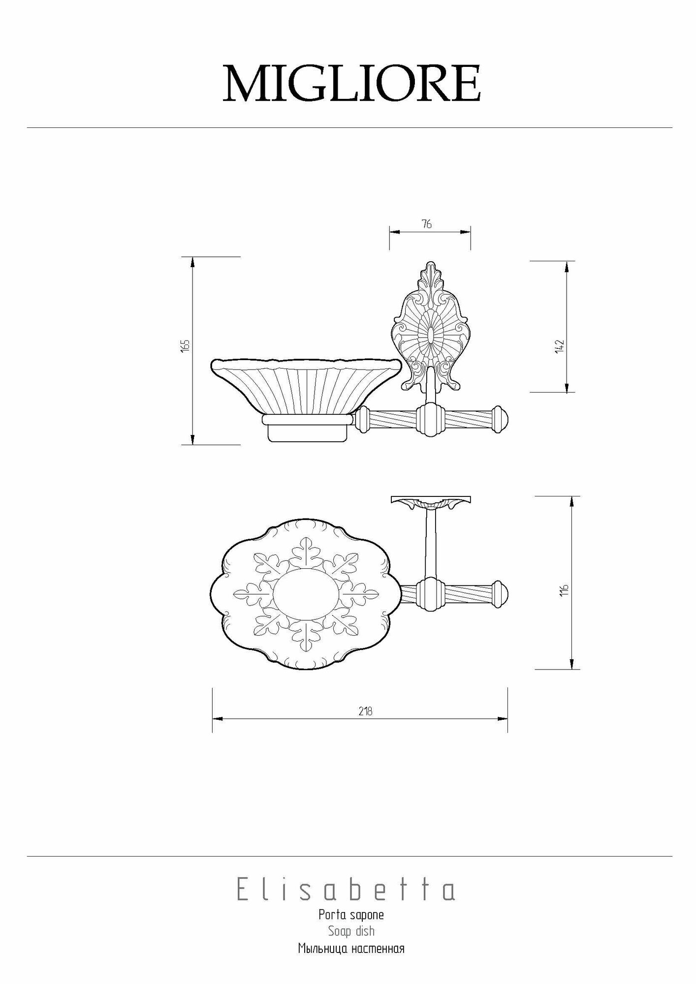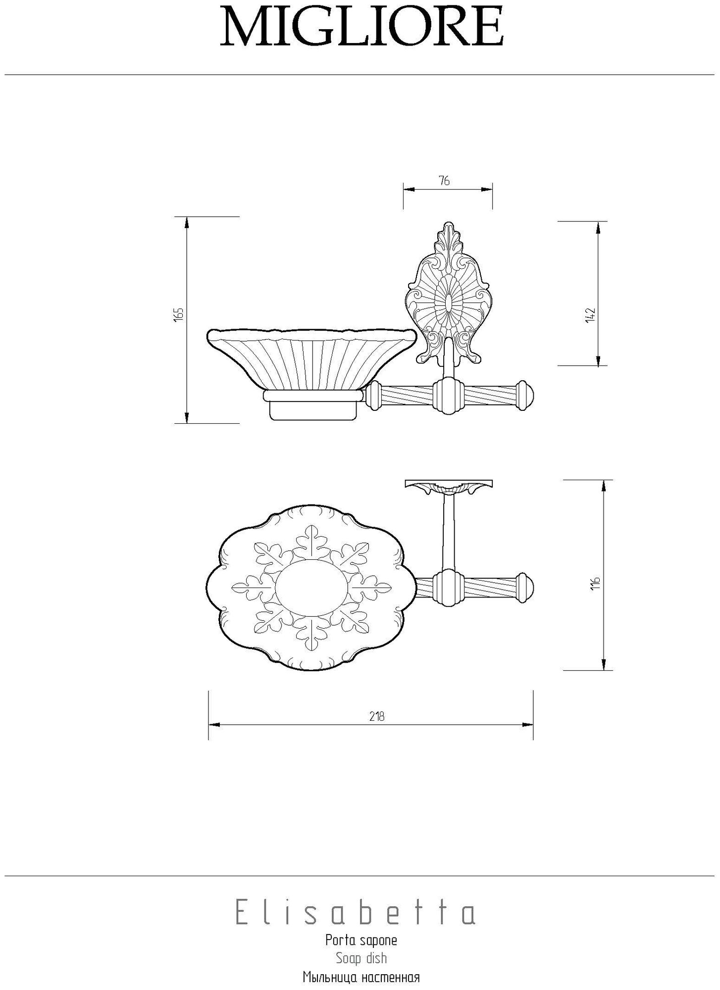 Мыльница настенная Migliore Elisabetta 17054. Мыльница настенная Migliore - один из необходимых аксессуаров для ванной комнаты. Качественная белая керамика, которую очень легко мыть. Между керамикой и латунным кольцом имеется уплотнительное пластиковое кольцо, которое надежно удерживает мыльницу. Розетка аксессуара имеет необычную форму, и удобный крепеж