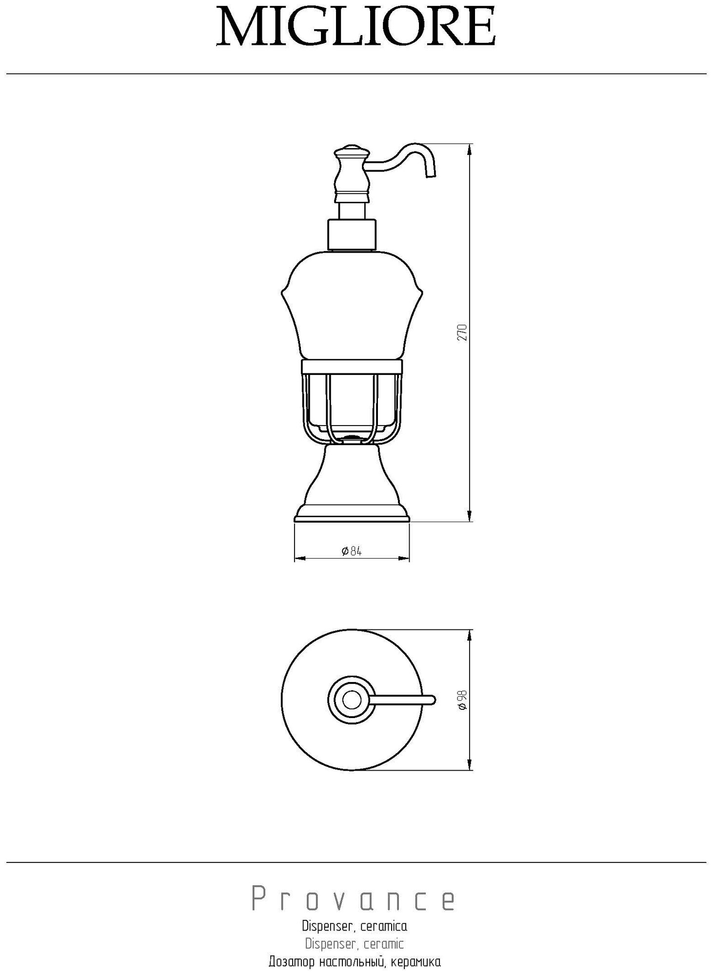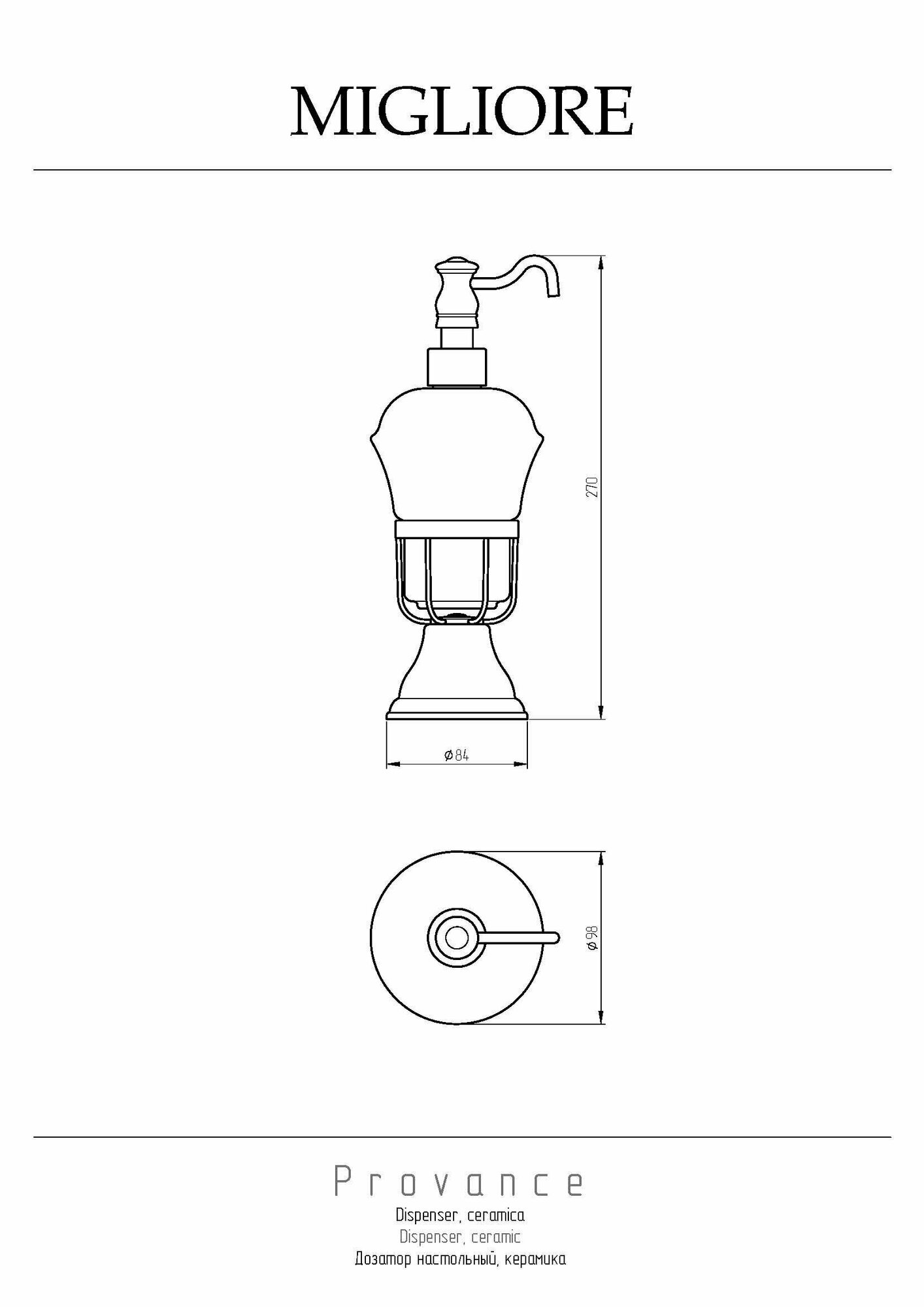 Аксессуары коллекции PROVANCE бренда MIGLIORE имеют нежный цветочный декор на керамике и создают уют в ванной комнате в классическом или рустикальном стиле. Дозатор жидкого мыла настольный с керамической колбой коллекции PROVANCE - один из необходимых аксессуаров, который можно использовать в ванной комнате и на кухне для мыла или моющего средства. Высококачественная белая керамика легко моется, а нажимной механизм имеет эргономичный дизайн. Между керамикой и латунным кольцом имеется уплотнительное пластиковое кольцо, которое надежно удерживает колбу дозатора.