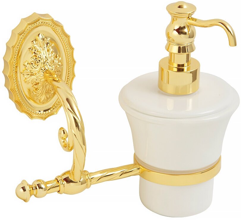 Дозатор жидкого мыла настенный с керамической колбой коллекции EDERA бренда MIGLIORE - это многофункциональный аксессуар. Вы можете повесить его над раковиной, в душевой кабине или на кухне. Высококачественная белая керамика легко моется, а нажимной механизм имеет эргономичный дизайн. Между керамикой и латунным кольцом имеется уплотнительное пластиковое кольцо, которое надежно удерживает колбу дозатора. Благодаря витым элементам и необычной овальной розетке аксессуары коллекции EDERA будут смотреться элегантно и оригинально в классическом интерьере.