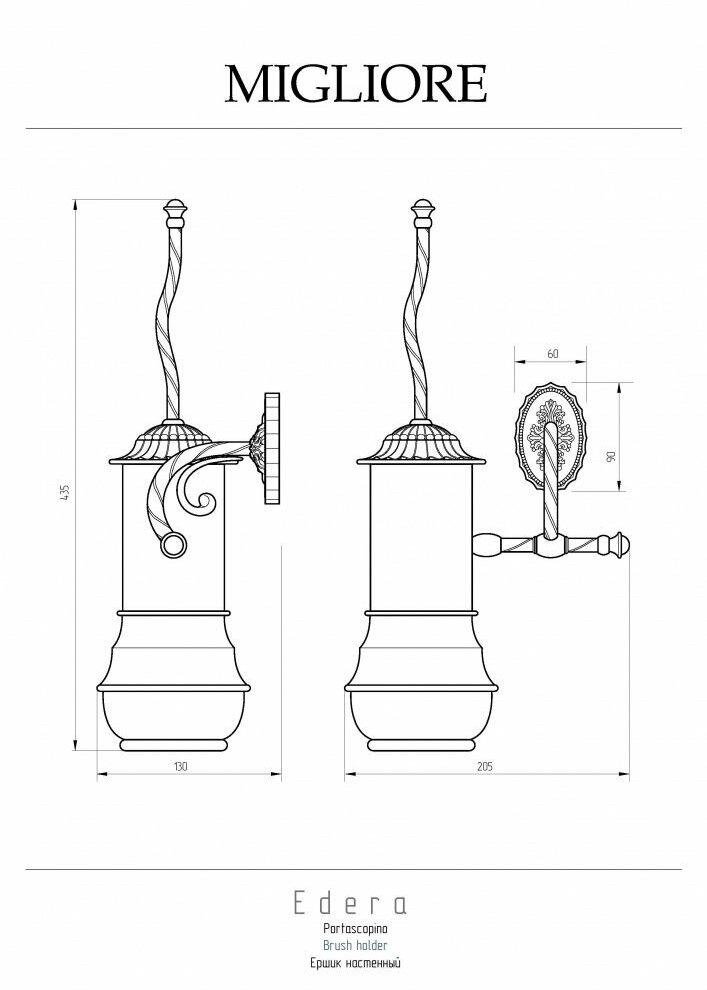 Ершик для унитаза Migliore Edera 16891 настенный.