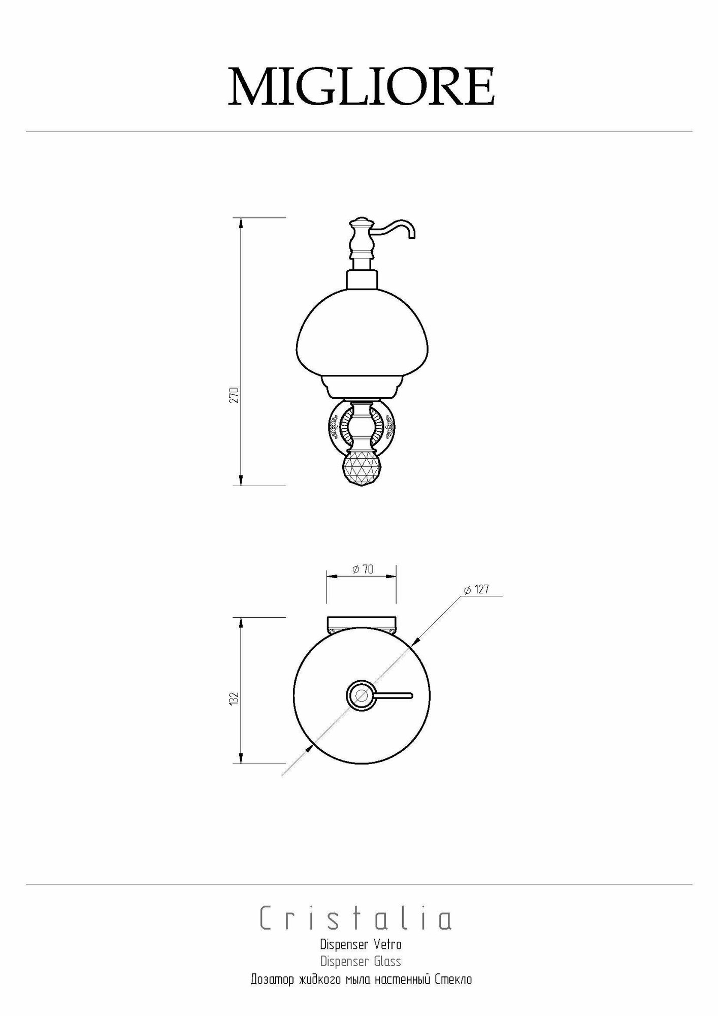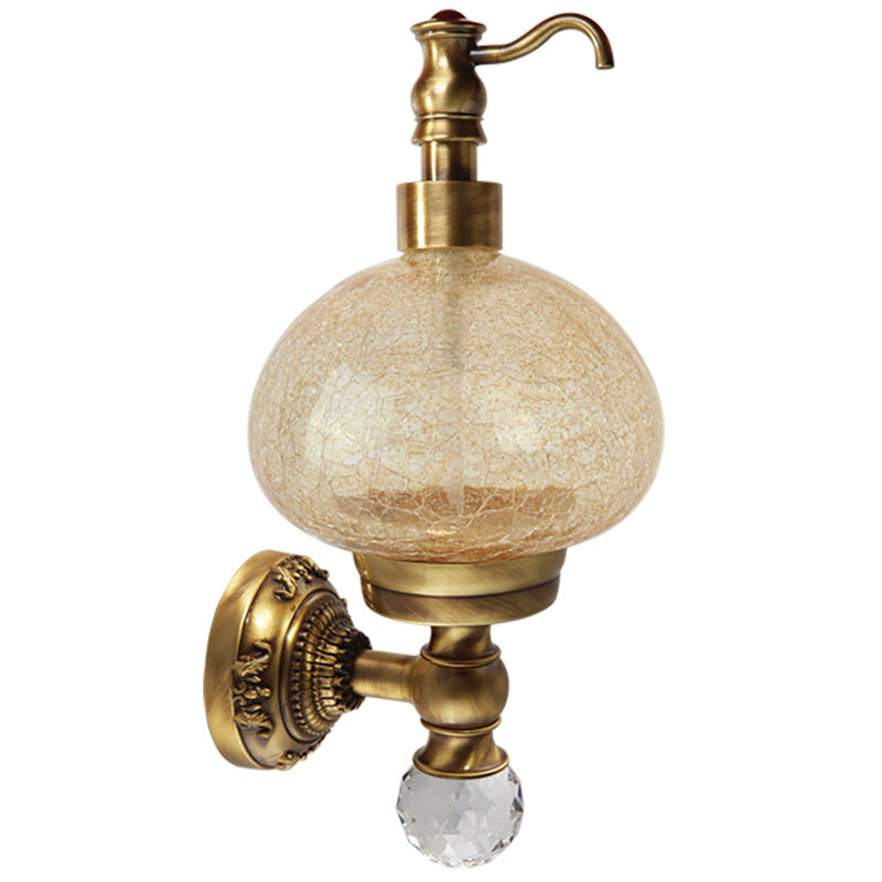 Дозатор настенный коллекции CRISTALIA бренда MIGLIORE -один из самых необходимых аксессуаров для ванной комнаты. Стекло дозатора изготовлено вручную с добавлением фольги из золота, которая, растворяясь в стекле, образует богатый и красивый декор. Аксессуар украшен кристаллом Сваровски. При необходимости дозатор можно вынуть из посадочного места, чтобы помытьИзделие выполнено из высококачественной латуни и имеет гальваническое покрытие золотом 24 карата. Внимание: золотое покрытие очень деликатное и для ухода рекомендуется использовать чистящее средство бренда MIGLIORE для смесителей и аксессуаров с деликатными покрытиями бронза, золото, медь и протирать мягкой ветошью.Материал: Латунь+стеклоОснащение: крепления (шурупы)