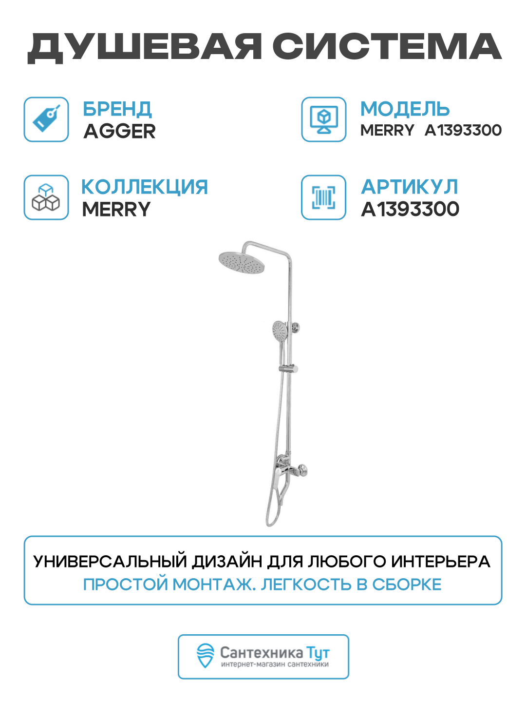 Душевая система Agger Merry A1393300 Хром
