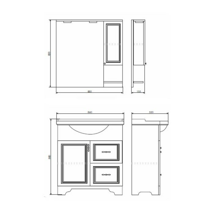 Габариты (ШхВхГ): 850*820*155 мм