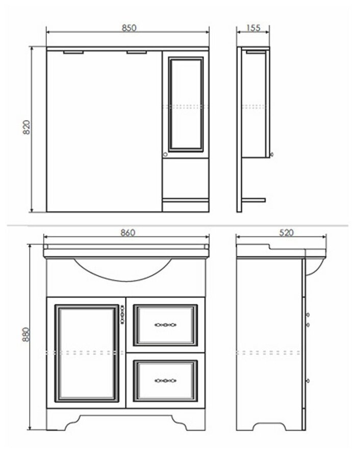 | Наличие шкафчика на зеркале | Да |