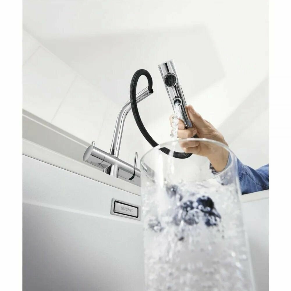 идеально вписывает в дизайн с мойкой blanco; выдвижной излив