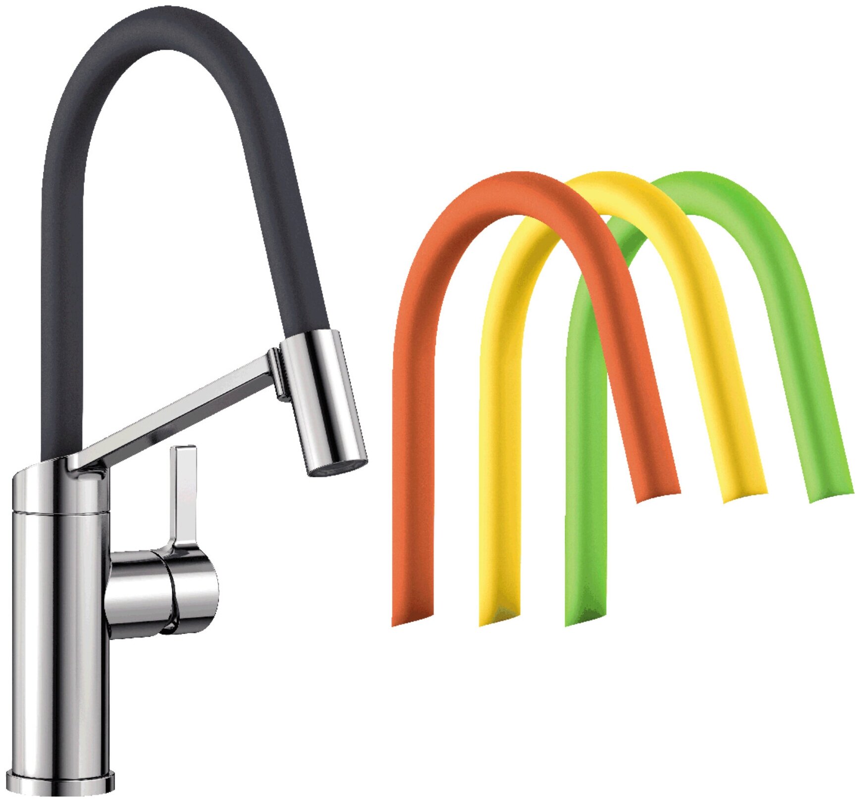 Хром. Смеситель для кухни Blanco Viu-S в цвете хром со сменной цветной нейлоновой оплеткой на излив (524813). Смеситель удобен в эксплуатации, надежен и прост в уходе.Технические данные:Выдвижной гибкий излив.Вращение излива на 360 градусов.Керамический картридж.Аэратор.Стабилизирующая пластина, увеличивающая устойчивость смесителя.Возвратный клапан.Шланг выдвижного излива покрыт нейлоновой оплеткой.В комплекте поставки:смеситель;4 сменных шланга на излив (киви, апельсин, лимон, лава);набор крепежа;