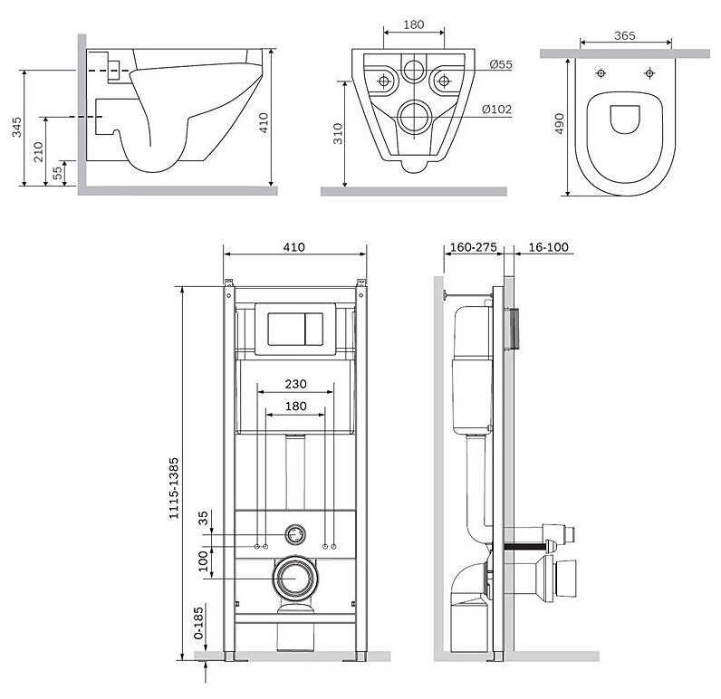Полностью готовый к установке комплект: система инсталляции с клавишей, подвесной унитаз с сиденьем. Неразборная рама из стального профиля выдерживает нагрузку до 400 кг. Полностью изолированный бачок с двухрежимной смывной арматурой. Укомплектован механической клавишей в цвете глянцевый хром. В комплекте все необходимые патрубки и крепления, а также прокладка между унитазом и стеной - звукоизоляция. Компактное дизайнерское решение: подвесной унитаз Spirit V2.0 идеально впишется в санузел любого размера благодаря проекции 49 см. Эффективный душевой смыв обеспечивает полноценное омывание чаши унитаза. Безупречная поверхность: изготовлен из стекловидного фарфора, самого гигиеничного и влагостойкого материала. В комплекте быстросъемное сиденье из дюропласта с механизмом плавного закрывания. Материал сиденья дюропласт, устойчивый к появлению царапин, в сочетании с креплениями из нержавеющей гарантируют долговечность сиденья. Механизм плавного опускания, рассчитанный на 100000 закрываний, и быстрого снятия - комфорт в использовании и легкость в уходе за сиденьем и керамикой.