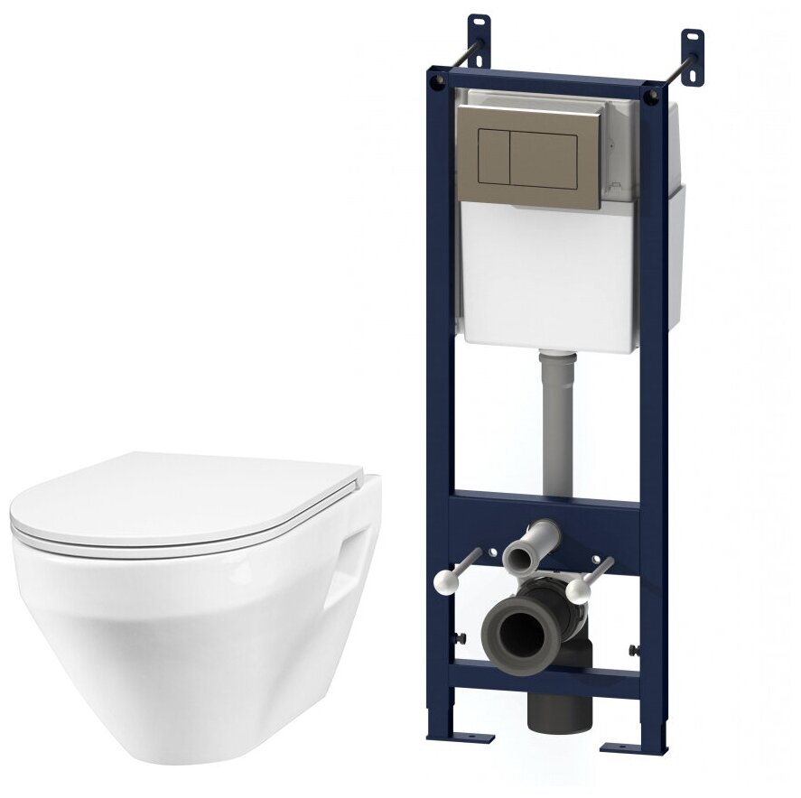 Сервис сравнения цен СкидкаГИД предлагает сравнить цены на товар «Комплект унитаза с инсталляцией AM PM Spirit IS3701738 с сиденьем Микролифт и клавишей смыва Хром»