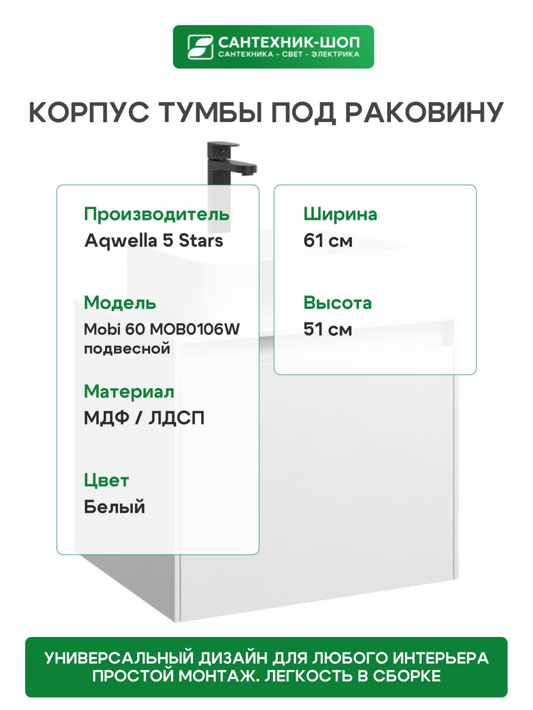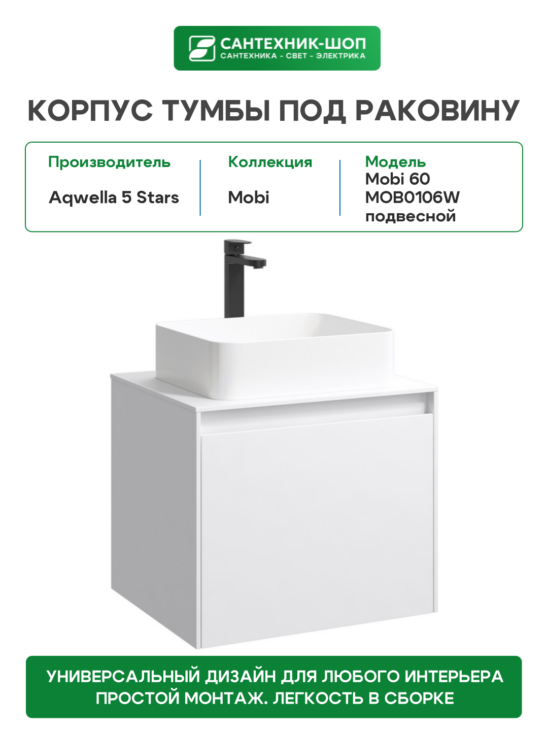 Корпус тумбы под раковину Aqwella 5 Stars Mobi 60 MOB0106W подвесной Белый