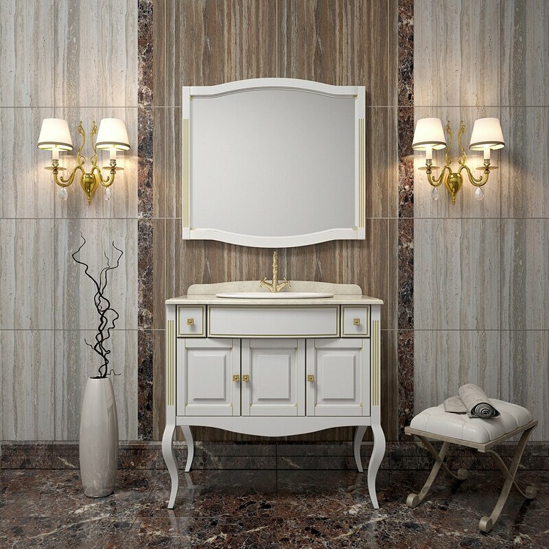 Зеркало Opadiris Лаура 100 Белое с бежевой патиной