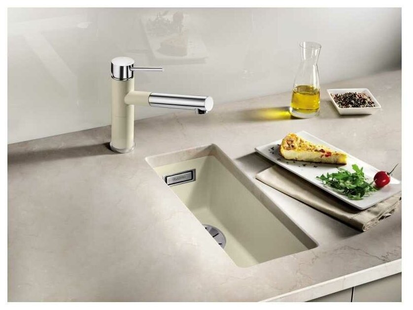 Элегантная мойка Subline 160-U изготовлена из натурального, удобного в эксплуатации материала SILGRANIT. Если установить ее в ряд с другими чашами и функциональными аксессуарами, композиция позволит эффективно организовать рабочее место. Благодаря новой технологии установки монтаж под столешницу выполняется легко и без дополнительных усилий. Максимальная вместимость чаши обеспечивает эргономичность и комфорт рабочего процесса на кухне. Отводная арматура InFino изящно интегрирована и проста в уходе.