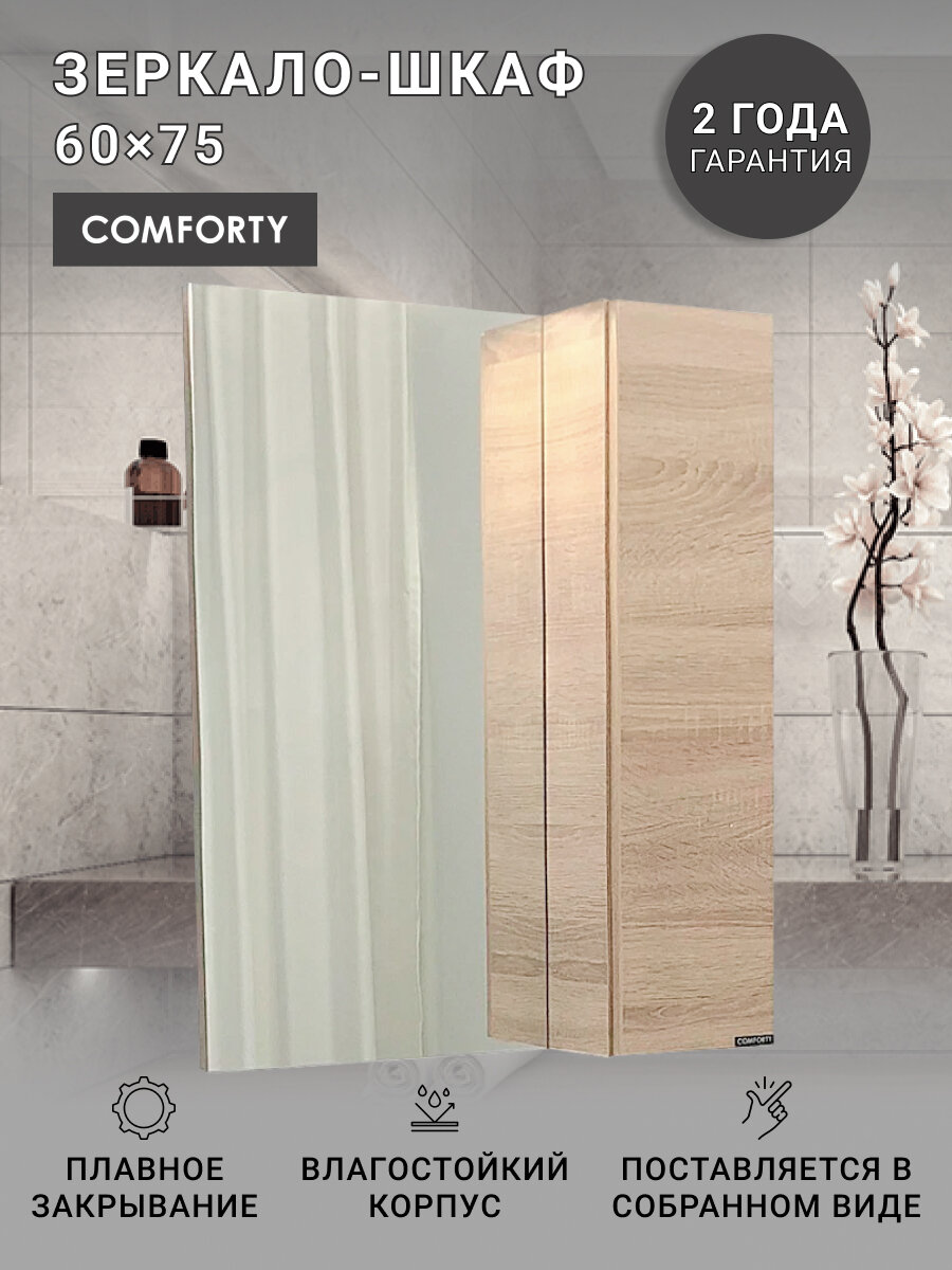 Зеркальный шкаф Comforty Прага 90 Дуб белый