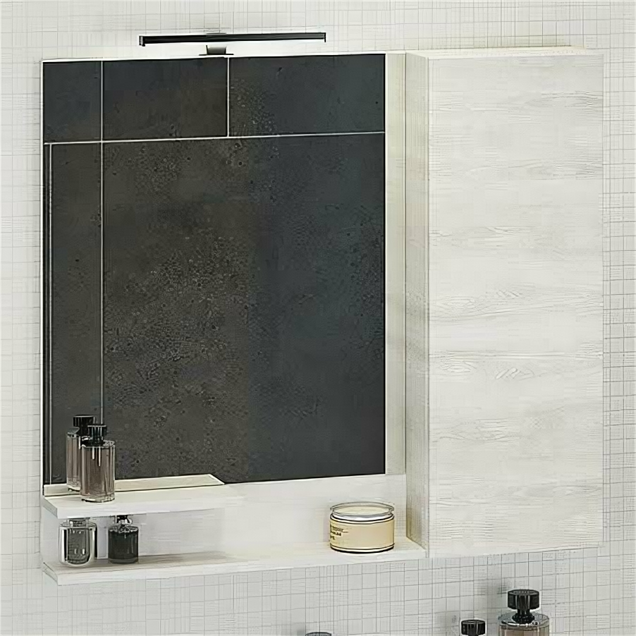 - Зеркальное высококачественное полотно с амальгамой на основе серебра. Створка мебельного элемента оснащена петлями с функцией плавного закрывания. За створкой две горизонтальные полки.