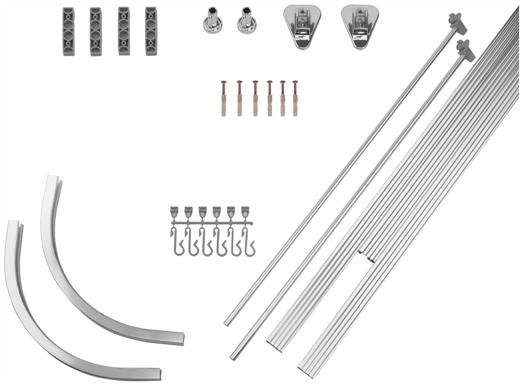 | ВКоробке | Карниз - 1 шт. Штанга опорная - 1 шт. Соединитель угловой - 1 шт. Крючок - 12 шт. Набор креплений - 1 шт. Инструкция - 1 шт. |