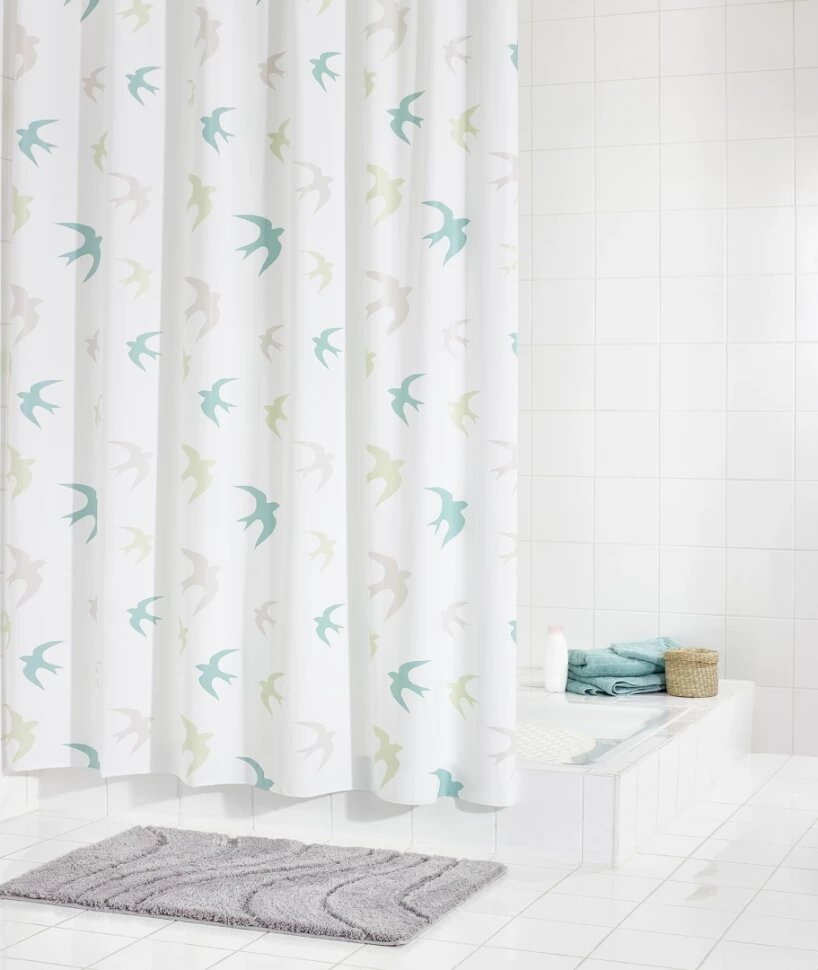 Штора для ванных комнат, размер 180 х 200 см из коллекции "Swallow" от немецкого бренда "Ridder". Допускается только ручная стирка.