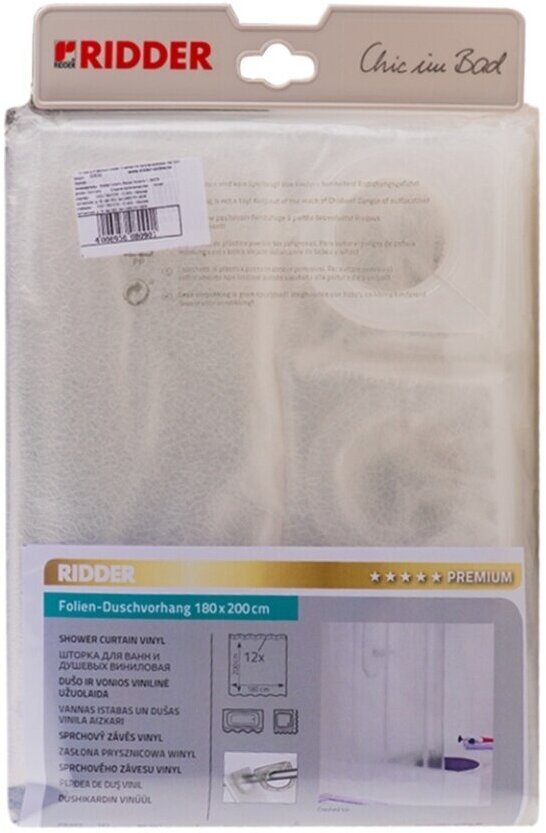 Штора для ванных комнат, размер 180 х 200 см из коллекции "Crashed Ice" от немецкого бренда "Ridder". Допускается только ручная стирка.