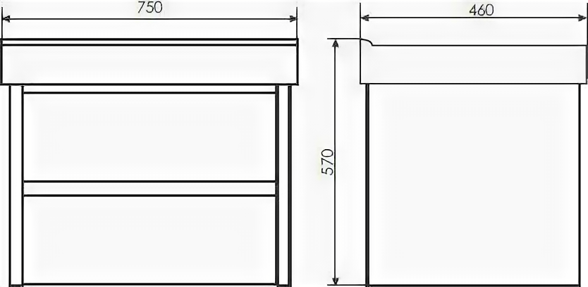 Подвесная тумба с двумя выдвижными ящиками оснащенными системой плавного закрывания. Фасады покрыты белой глянцевой эмалью.
