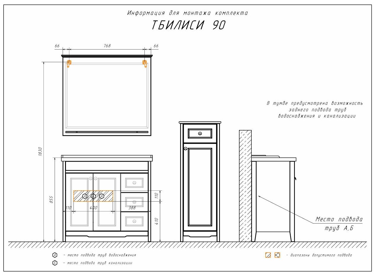 Габариты корпуса тумбы (ШхВхД): 85 х 91 х 47 см.