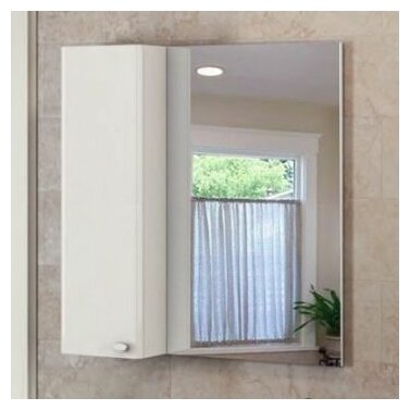 - Навесной зеркальный шкаф, имеет место для хранения ванных принадлежностей, удобно умещает их в себе, покрыт белой эмалью.