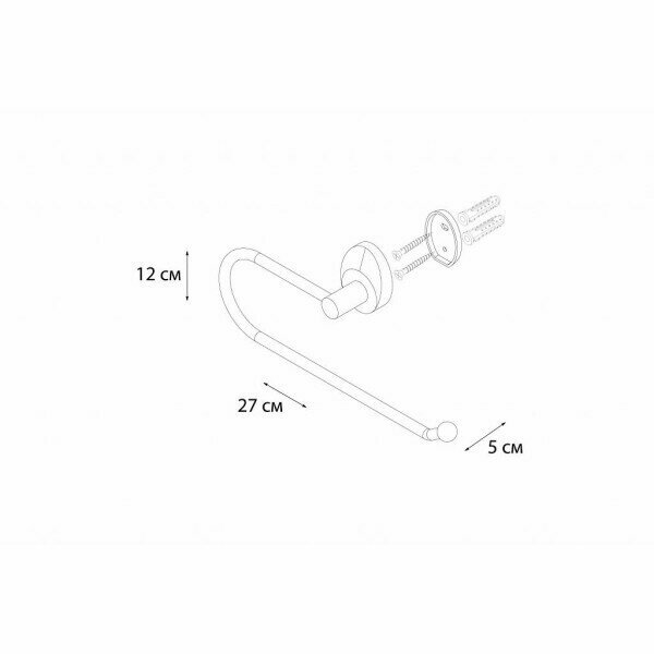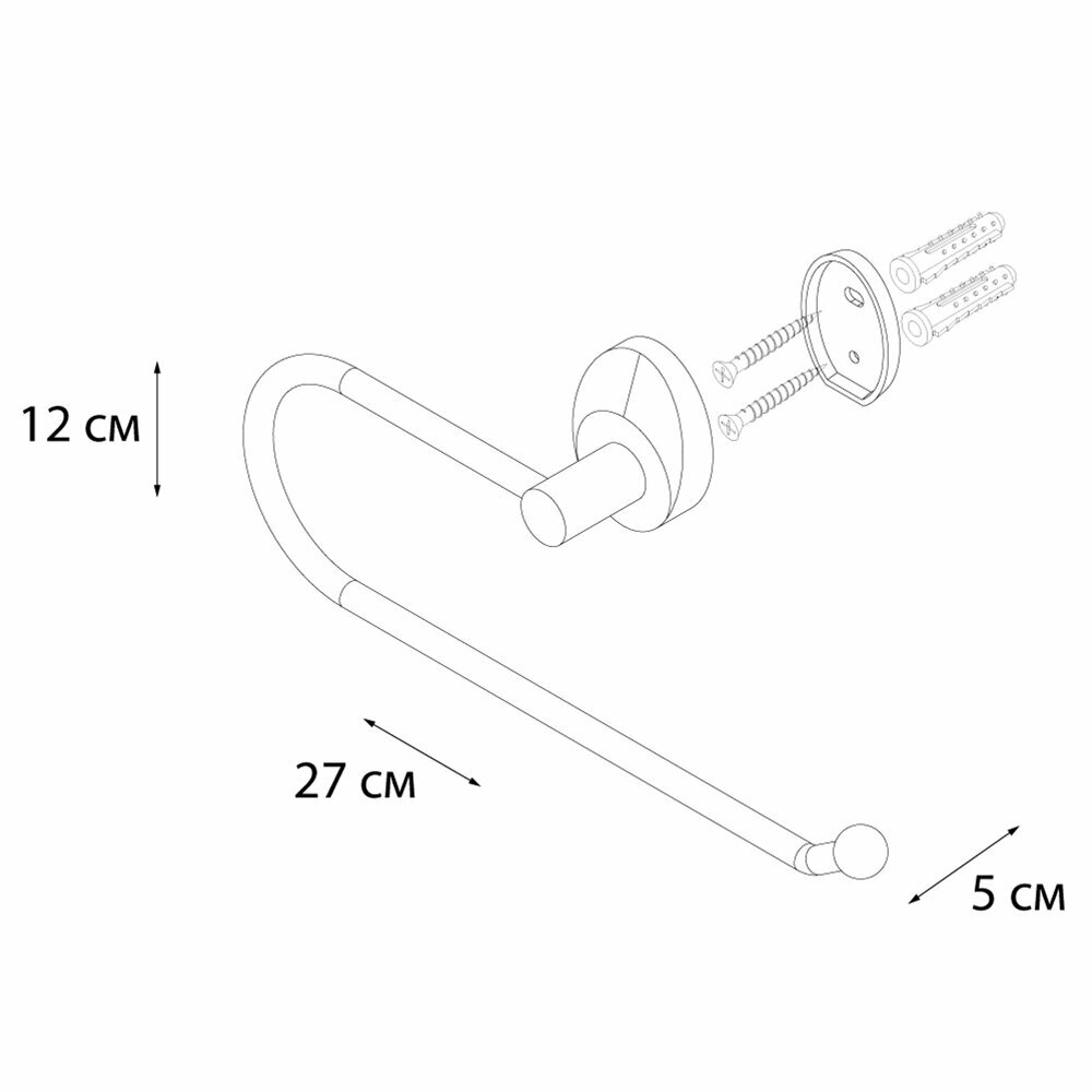 полотенцедержатель кольцо, монтаж: настенный. Ширина: 26,5. Высота: 12 см. Глубина: 5 см. Метод крепления: шурупы. Тип рисунка: без рисунка. Фактура: гладкая. Форма: округлая