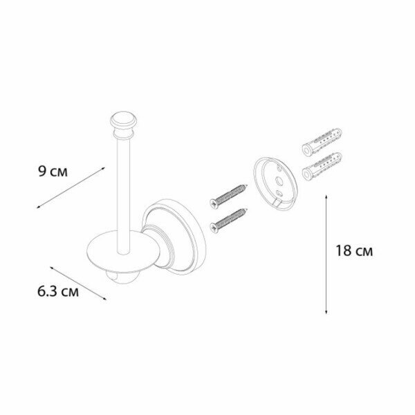 Держатель запасных рулонов туалетной бумаги. Монтаж настенный при помощи шурупов. Размеры: 6,2x17,5x9,5 см.