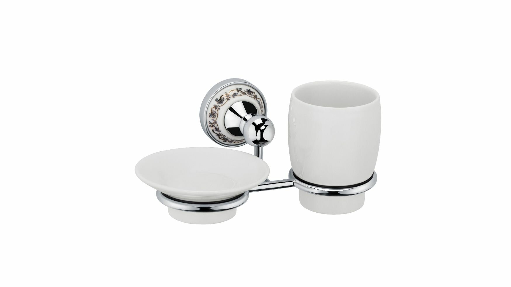 Стакан для зубных щеток с мыльницей Fixsen Bogema FX-78506+08 Хром Белый