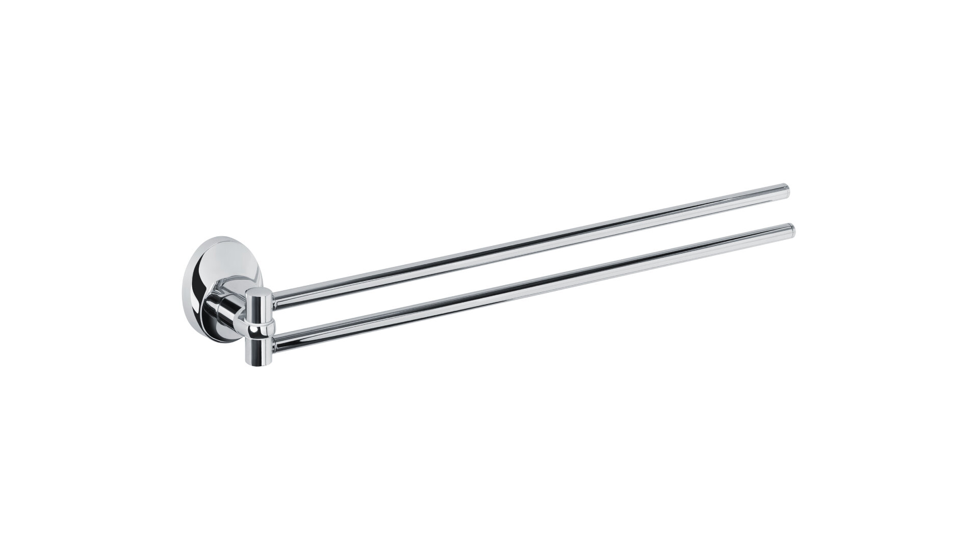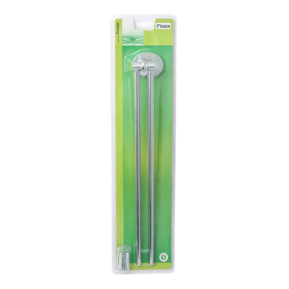 Металлический трубчатый поворотный держатель для полотенец Fixsen Europa FX-21802A двойной с овальным основанием в лаконичном дизайне, который подойдет к любому современному интерьеру ванной комнаты.