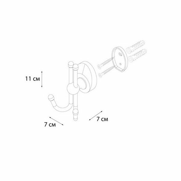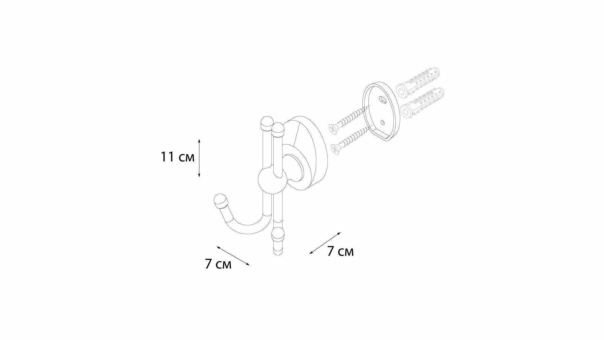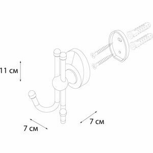 крючок двойной, монтаж: настенный. Ширина: 7. Высота: 12 см. Глубина: 7 см. Метод крепления: шурупы. Тип рисунка: без рисунка. Фактура: гладкая. Форма: округлая