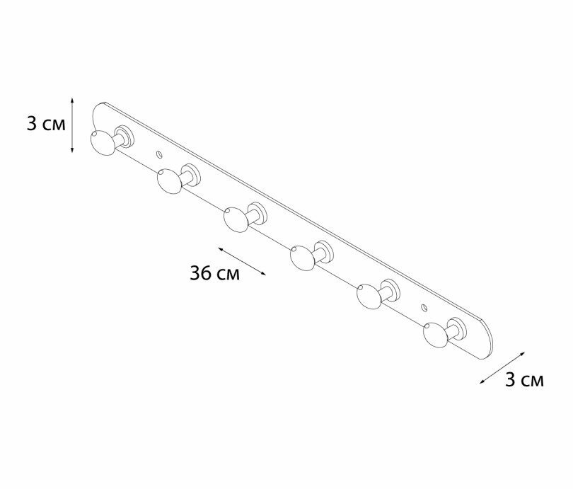 планка 6 крючков, монтаж: настенный. Ширина: 36. Высота: 3 см. Глубина: 3 см. Метод крепления: шурупы. Тип рисунка: без рисунка. Фактура: гладкая. Форма: прямоугольная