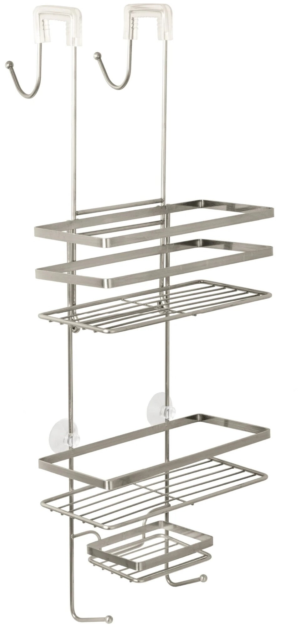 полка прямоугольная двухэтажная хром, монтаж: подвесной. Ширина: 23,5. Высота: 49 см. Глубина: 12,5 см. Метод крепления: присоски. Тип рисунка: без рисунка. Фактура: гладкая. Форма: прямоугольная